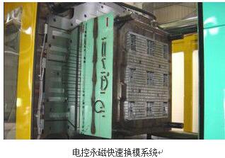 電控永磁快速換模系統(tǒng)主要是針對(duì)傳統(tǒng)注塑機(jī)、沖床、合模機(jī)裝夾模具時(shí)間長(zhǎng),操作復(fù)雜,安全性低而設(shè)計(jì)的,該系統(tǒng)采用電控永磁模板及動(dòng)模板,只需經(jīng)過簡(jiǎn)單的充退磁動(dòng)作,就能裝夾和更換模具,真正做到3分鐘換模,它既可以安裝到新機(jī)中,作為標(biāo)準(zhǔn)配置銷售給終客戶,也可以對(duì)正在使用機(jī)臺(tái)進(jìn)行改造,使傳統(tǒng)機(jī)臺(tái)具有3分鐘快速換模功能而不會(huì)改變?cè)瓉頇C(jī)臺(tái)的結(jié)構(gòu),即實(shí)用又方便。那么