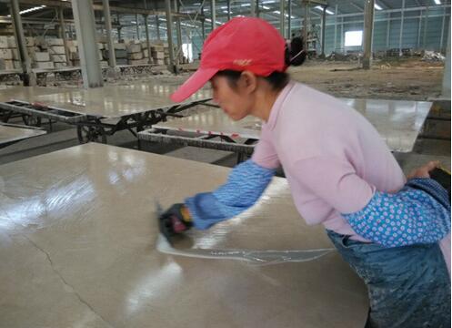 5.加工:膠在未完全固化前,應將石板靜置平放,切不可疊放。多余的膠,未固化前可用刮刀去除。打磨拋光等操作應在膠水完全固化后才能進行。