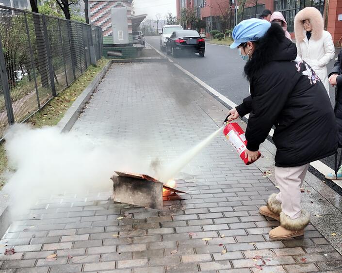 隨后,所有員工在園區(qū)空曠區(qū)域進(jìn)行了滅火器、滅火毯使用的實(shí)際操作,保證每一位員工都會(huì)、都能在緊急情況下使用這兩種滅火器材。