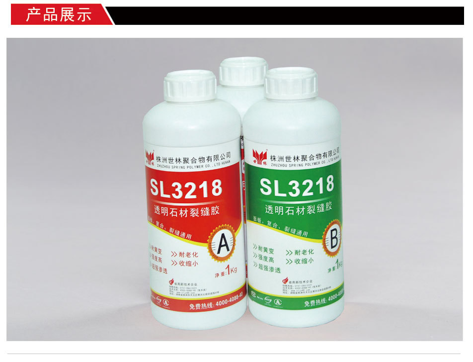 我們對這兩款石材裂縫修補(bǔ)膠該如何選擇呢?一般我們建議還是采用環(huán)氧樹脂類型的,這種膠雖然固化速度為25℃需要24小時,但是由于強(qiáng)度高,有一定的韌性,耐打磨性能突出,所以做出的石材檔次高,尤其是淺色系列的石材,現(xiàn)在多用SL3218石材裂縫修補(bǔ)膠。這種膠透明度很好,耐黃變性能優(yōu)異,也受到很多大的出口大板廠商青睞。
