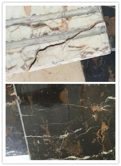 根據(jù)網(wǎng)上提供的號碼18169335841,聯(lián)系到銷售工程師謝工,告知斷裂面大需要先無水清理干凈斷面,再調(diào)和石粉補(bǔ)強(qiáng)固定住后再灌膠到裂縫內(nèi),等固化后再打磨,裂縫小則直接用膠灌注表面等膠慢慢滲入。于是訂購一組按說明操作,哎!還別說,效果還真的好。不僅大理石斷裂處全部修補(bǔ)好了,連之前一些小的裂縫也都填補(bǔ)齊了,打磨后還非常牢固。 SL3218透明裂縫修補(bǔ)膠除了用在大理石裂縫修補(bǔ)外還可以用于其他玻璃、木材、陶瓷等的裂縫及斷裂面修補(bǔ)。